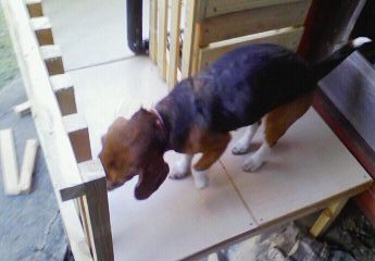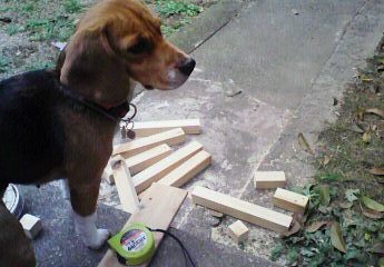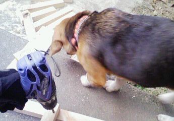 ドリルや電ノコを使っているそばをウロウロするひまわり。