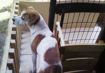 犬の日常朝から昨日の渡り廊下作りの続きをしています。