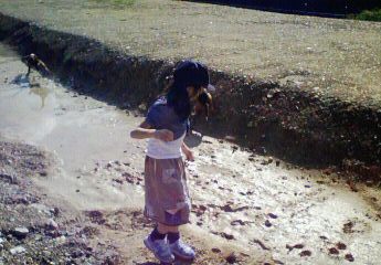 またハロンは水溜りに入ってドロドロ