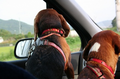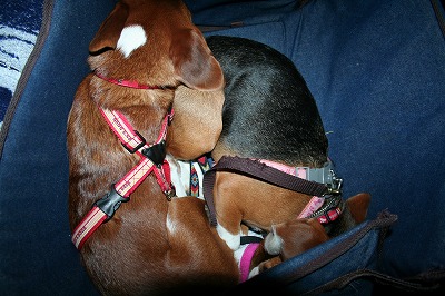帰りの車中はぐっすりの2匹