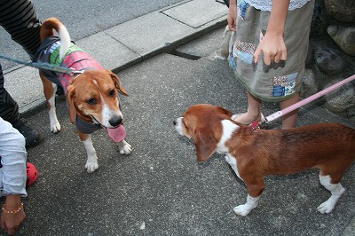 まだまだ残暑がきびしいなかワンコたちも舌を出しながら私