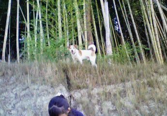ハロンと娘とお得意の小山に登っていると『プアー!プアー』
