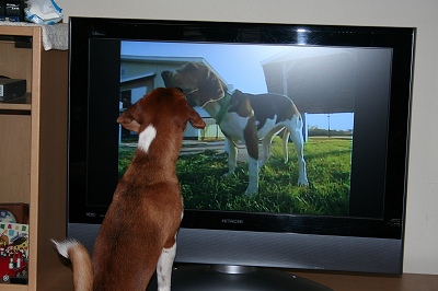 そのクーンハウンドが鳴くとテレビ好きなひまわりがテレビ