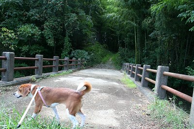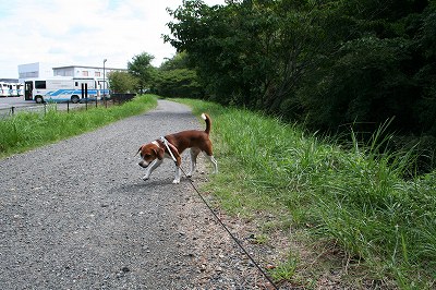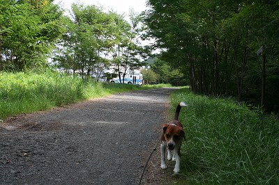 この道は数少ない舗装されていない道路なので犬の散歩には