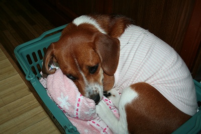 いけど雨にぬれたのと寝ているのとでかなり犬臭い。