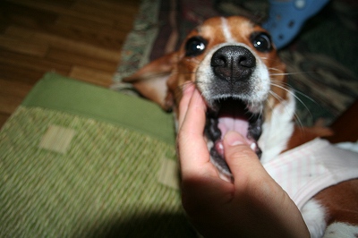 犬の日常一昨日知人に『ハロンちゃん歯が白いね』と言われ『まだ乳歯だから
