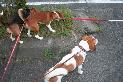 夕方の散歩は3匹一緒に行ったがハロンのメチャクチャ歩きに娘は半べ