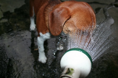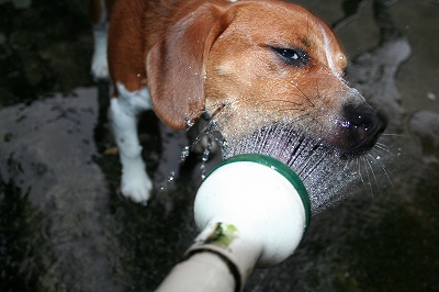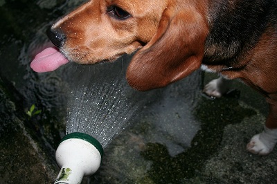 散歩の後は恒例のシャワー水のみ!