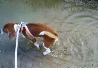 でもお水大好きハロンは水溜りにジャブジャブ入っていって体温調節?