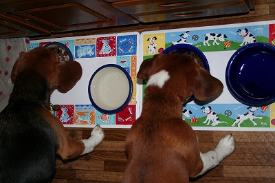 今朝はお腹が大きいハロンとひまわりはかわいそうだけどおかゆのみ。