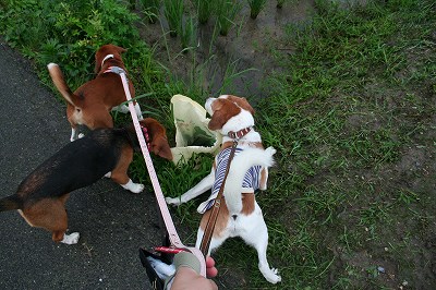 た。親たちより遅い時間の散歩なので暑くてへぇへぇ言ってたけど体力的