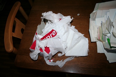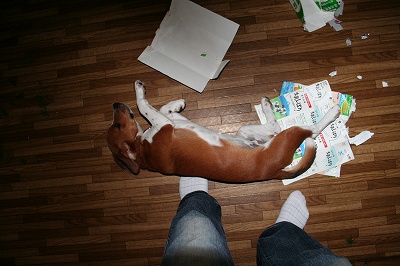 きっとハロンが扉の隙間に鼻を突っ込んで開けて、あとは3匹であさったん
