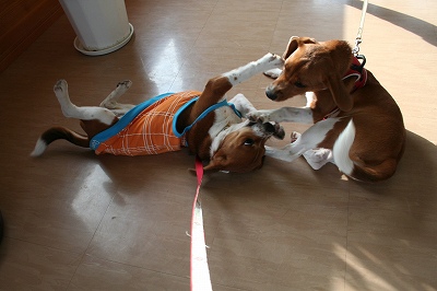この後もお互い『遊んでポーズ』でじゃれあいの続きをしようと誘っていた。