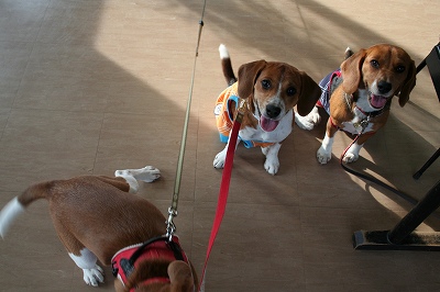 雨が強いので夜の散歩は行きたくない様子の3匹。