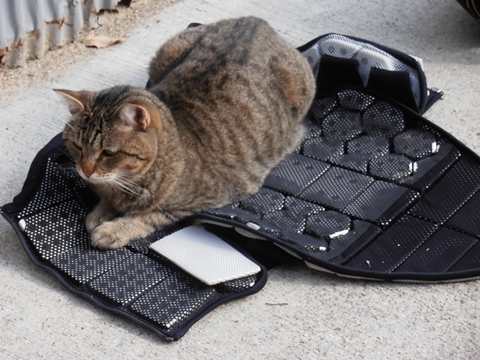 わざわざプロテクターに乗ってくる