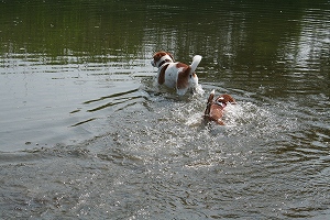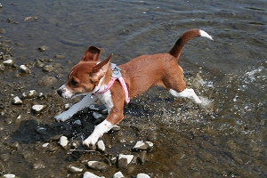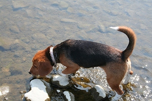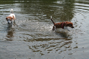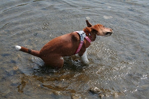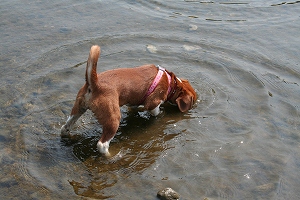 さっそく川に入るハロン