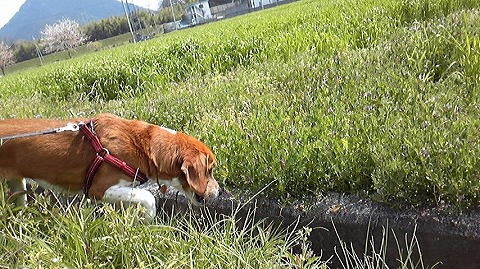 犬の日常今朝ハロンが庭で何かに夢中になっていました