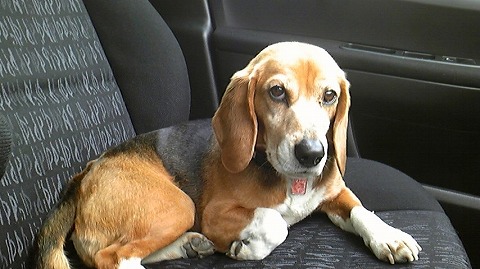 100mほど先で信号待ちをする男性とラブちゃんがいました