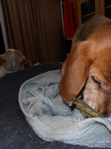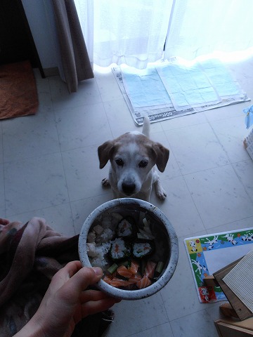 犬の日常フロスティとひまわりは何でも食べます