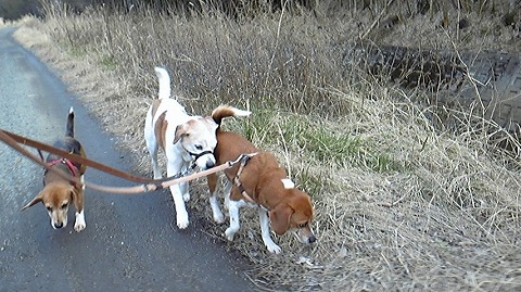 3匹一緒に早めに午後のお散歩を済ませました