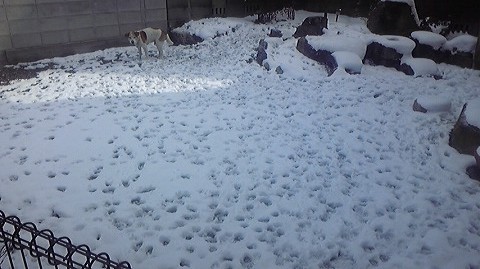 ↑ これは今朝すでに雪が融け始めたわんこスペース
