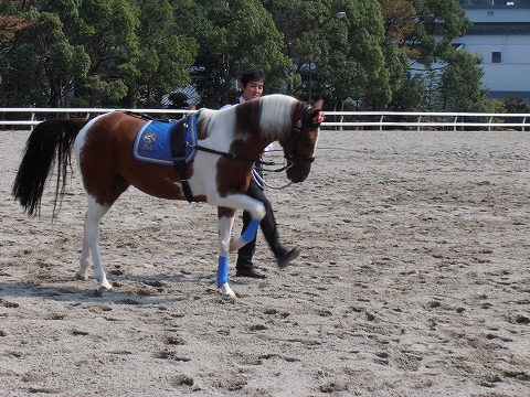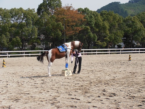 最後は現役ジョッキーによるジムカーナ(簡単な障害飛越)リレー