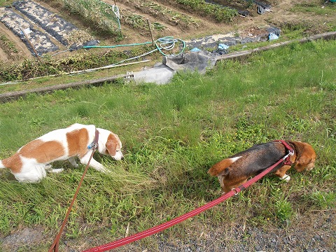 暖かくなってフロスティはひまわりとお散歩するようになりました