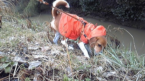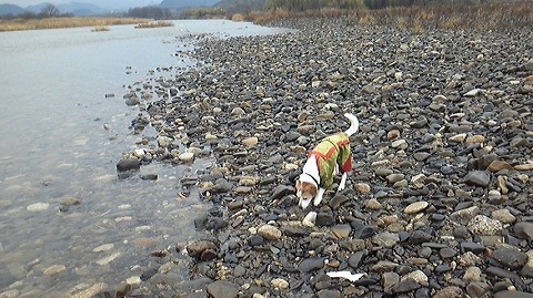 雨でしたが元気にお散歩要求してきたので今日は河原まで脚を