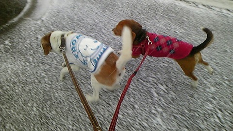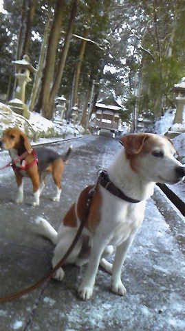 昨日雪が降った嬉しさで朝晩のお散歩も長めで、さらに買い物も歩いて