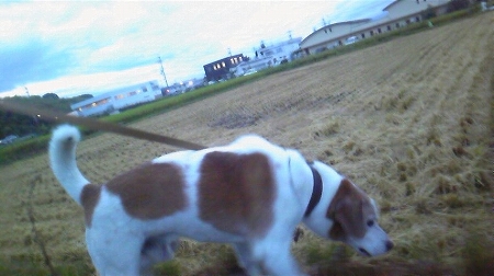 落ちて暗い時間に行っている夜のお散歩も今日は早めに行くこと
