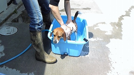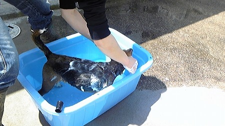 お散歩の後お外で脚を洗うんですけど、そのついでに3匹は