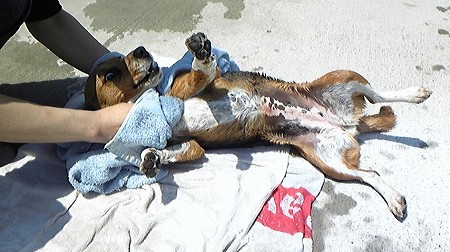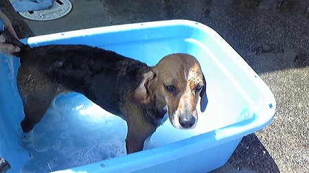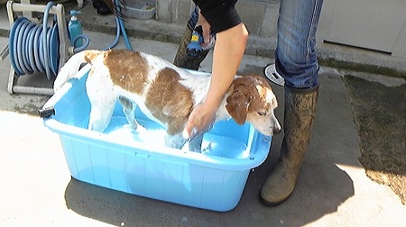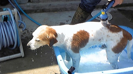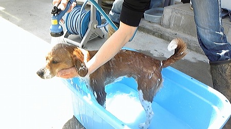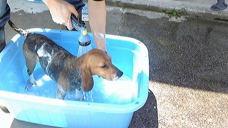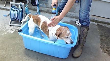 こんな日は恒例の”お外シャンプー”