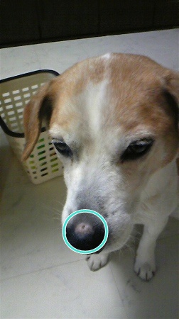 犬の日常鼻の皮がむけたフロスティですが今度はかさぶたがとれました