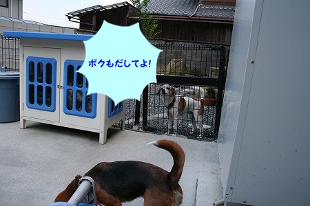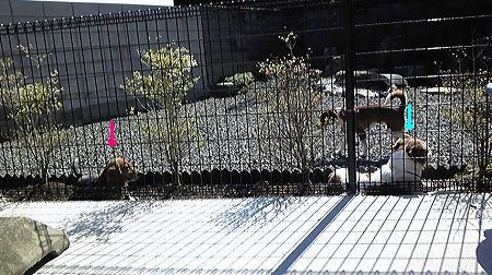 縄張り意識全開のフロスティとハロンは吠えまくって2匹を