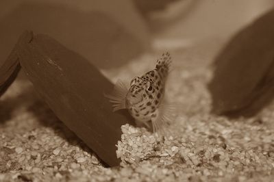 ミドリフグは汽水魚なのですが海水の方が発色も元気もいいので