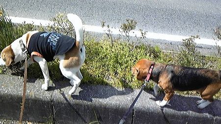 朝のお散歩の直後に出かけたというのに2度目のお散歩と