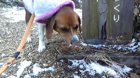 昨日の夜のお散歩を拒否した雪嫌い?なフロスティは