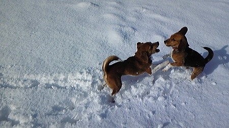 雪が積もって嬉しいのか走り通しのひまわり