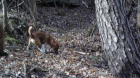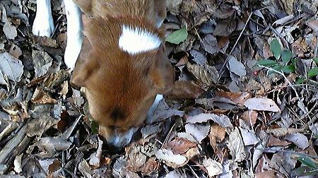 1粒投げたドライフードを必死で探しています