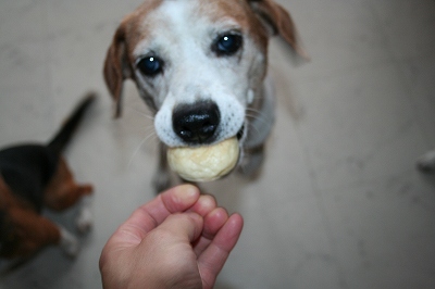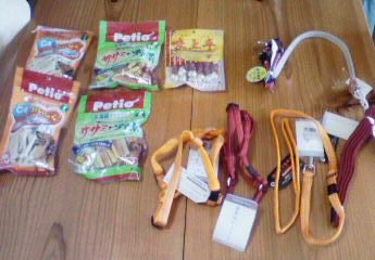 ワンコ連れだともらえるおやつが4袋(1つはお金払いましたよ)