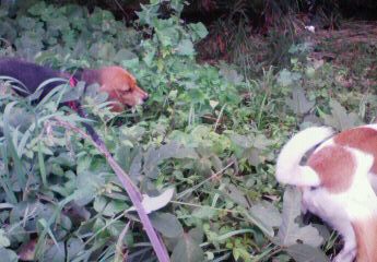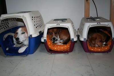 不満気だった3匹を仕事を終えてから変則散歩に連れ出しました