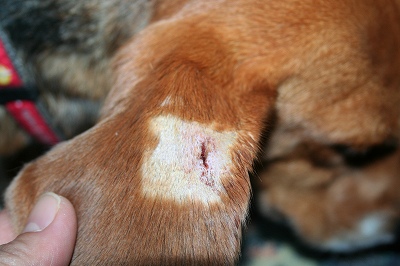 犬の日常手術前のひまわりの体が汚れてしまうかなと思いましたが、少し