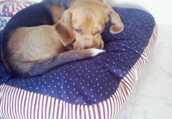 中の綿はハロンが散々破壊してきたベッドからの再利用です