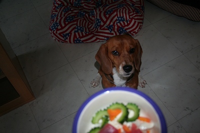 ↑の写真はワンコがお散歩から帰ってご飯を待っている時です