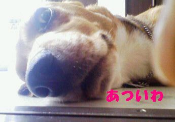 寝ながら大汗、朝お散歩に行ってひと汗、ご飯を食べてひと汗