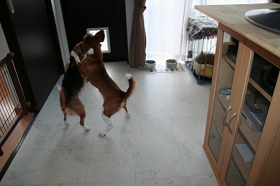 犬の日常私が仕事から帰るとたいていハロンがお出迎えをしてくれます。
